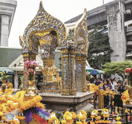 에라완 사원은 많은 현지인들이 진심으로 기도를 올리면 소원이 반드시 이루어진다고 믿는 곳입니다. 이를 증명하는 듯, 이곳을 방문하면 언제나 많은 현지인들이 기도하는 모습을 볼 수 있습니다. 브라마 황금상 앞에 꽃을 바치고 정성스레 기도하는 모습은 매우 인상적입니다. 또한 사원에서는 태국 전통 무용과 음악도 함께 볼 수 있어 관광객 뿐 아니라 현지인 사이에서도 인기가 있습니다.