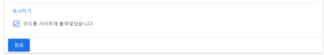 다시 구글 애드센스 사이트로 돌아와서 '코드를 사이트에 붙여 넣었습니다.'에 체크후 완료를 눌러 주세요