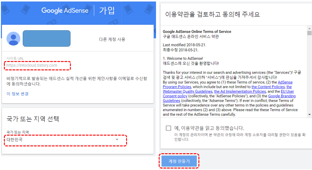 애드센스 광고를 삽입 할 티스토리 블로그를 애드센스에 등록하기 위한 절차 입니다.