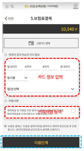 대망의 마지막 결재단계 입니다 :). 카드 번호 넣고 본인인증 한번 더 해 주면 완료!!