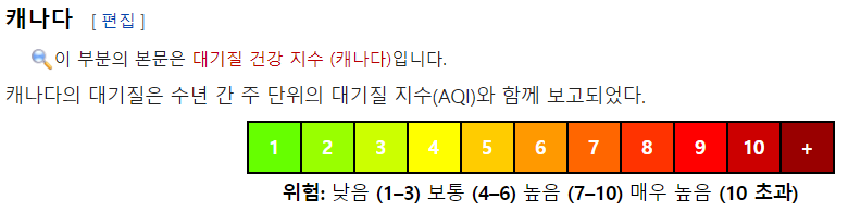 대기오염 등급과 색상