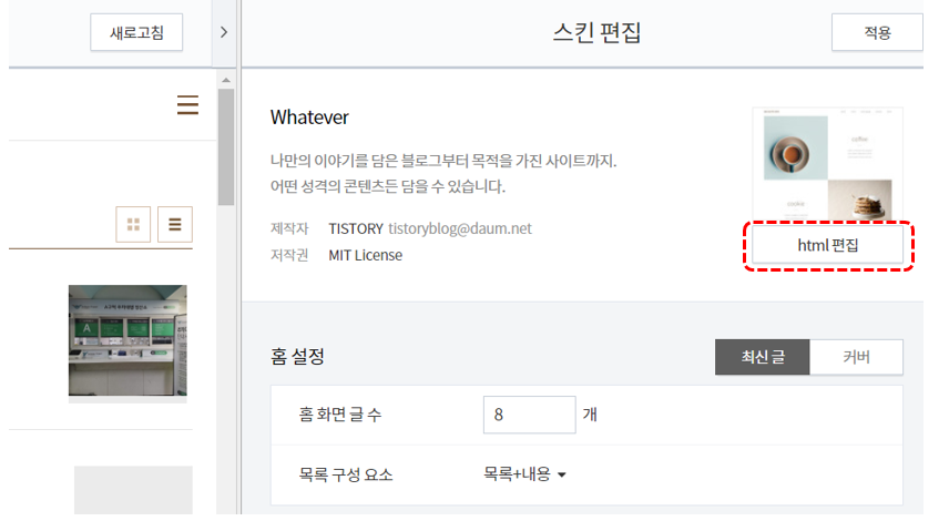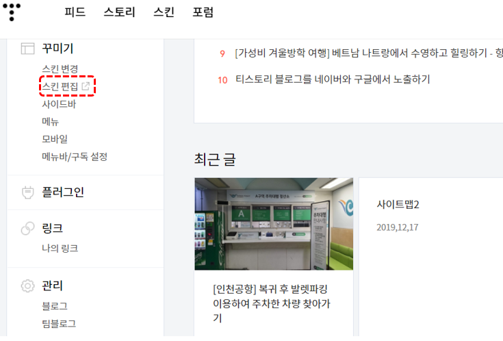 블로그홈 관리 꾸미기 에서 스킨편집 - HTML편집 - CSS선택