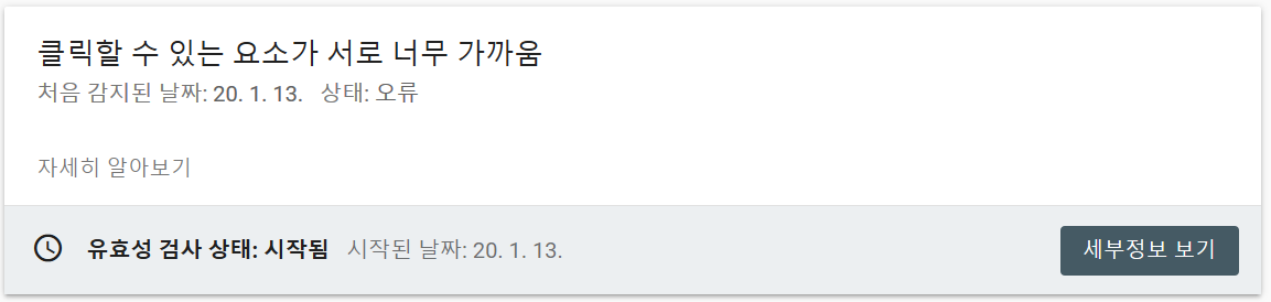 구글의 봇이 크롤링을 하고 분석을 시작할듯 합니다. 혹시 계속 문제가 되면 전반적인 모바일의 글씨 크기와 간격을 더 수정해 주고자 합니다. 최종 완료되면 결과를 댓글에 남기도록 하겠습니다.