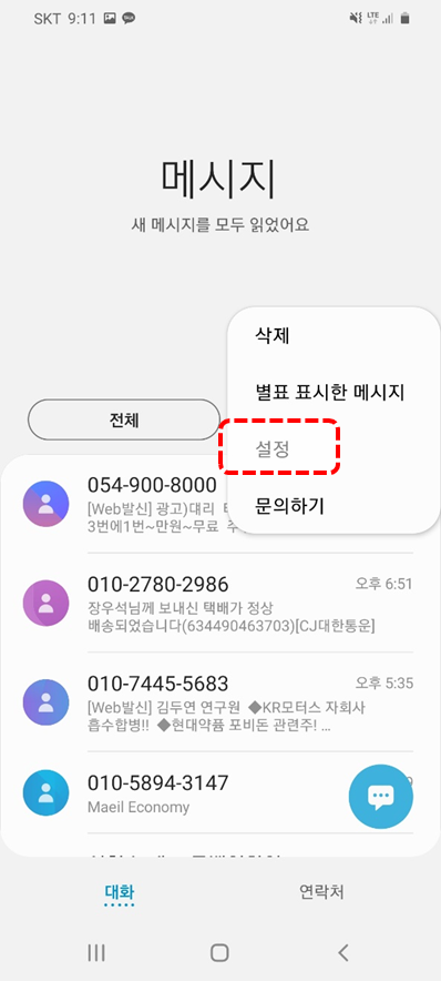 갤럭시 폰에서 긴급재난문자 받기 해지방법