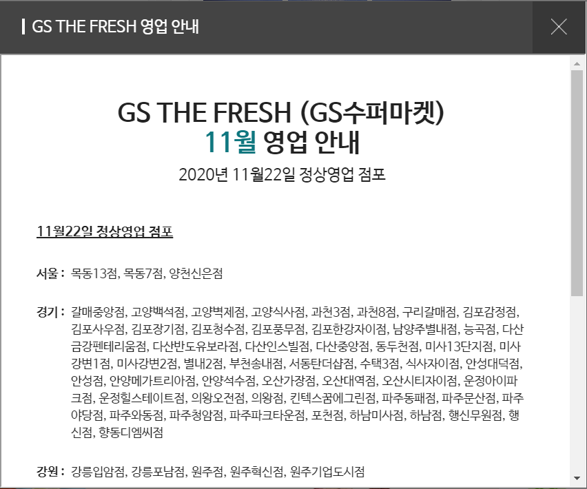 GS THE FRESH (GS수퍼마켓) 휴무일 확인하기