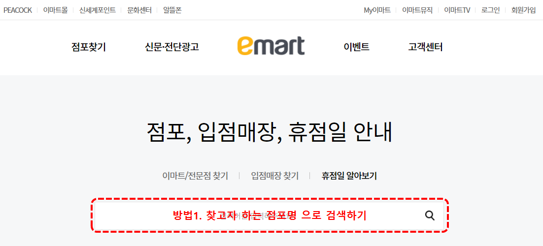 PC : 이마트, 노브랜드, 트레이더스 우리동네 휴무일 확인하기