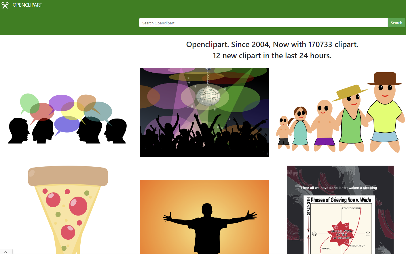 약 17만개의 무료 일러스트용 클립아트를 이용할 수 있습니다. 매일 새로운 클립아트가 오픈 됩니다. 제공되는 일러스트의 수준이 높지 않으나, 자유롭게 다운로드 하여 사용할 수 있는 장점이 있습니다.